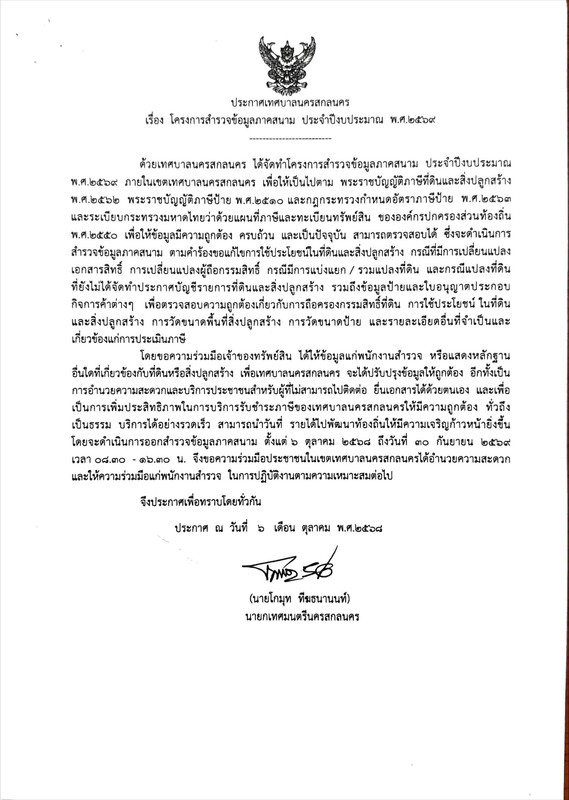 • ประกาศกระทรวงการคลังและกระทรวงมหาดไทย เรื่อง หลักเกณฑ์และวิธีการในการจัดเก็บภาษีที่ดินหรือสิ่งปลูกสร้างที่มีการใช้ประโยชน์หลายประเภท